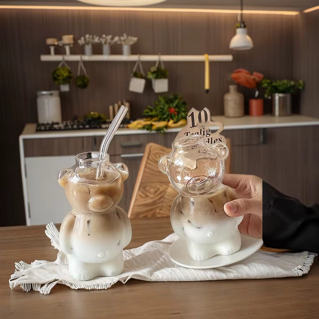 Bring a dash of cuteness to every sip with this Cute Transparent Bear-Shaped Coffee & Milk Glass Cup.