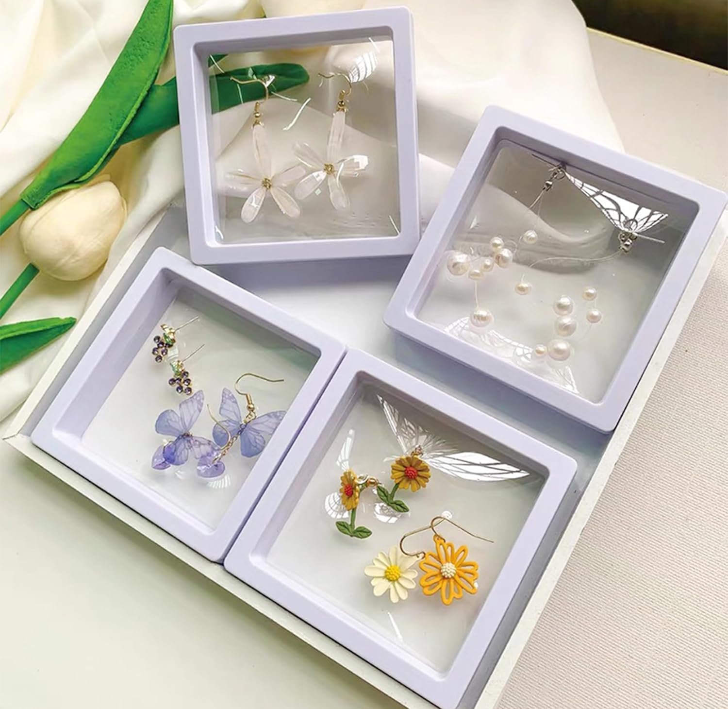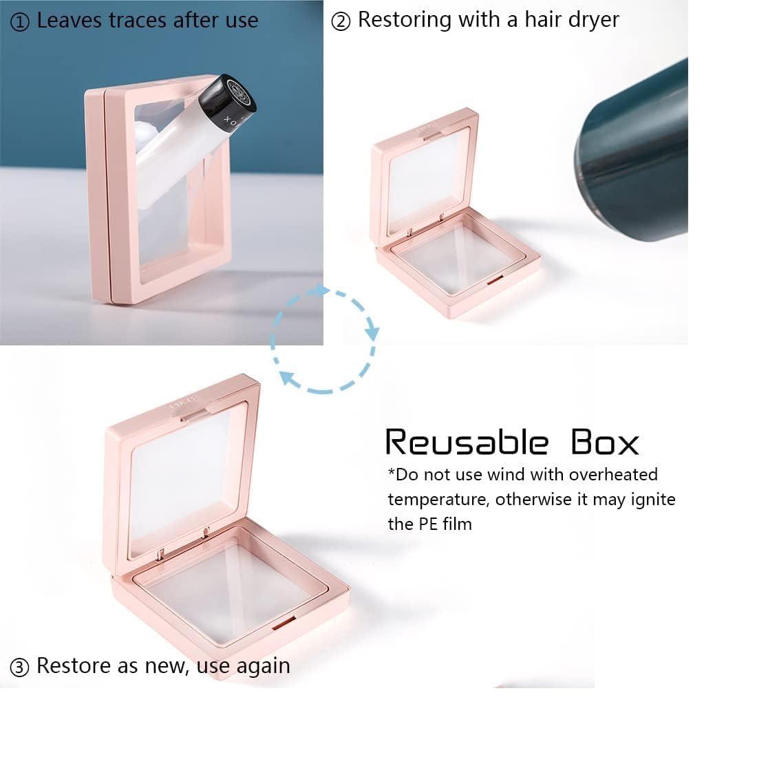 Floating Clear Jewellery Storage Case, Dustproof Display Box with PE Film | Set of 10 | Transparent