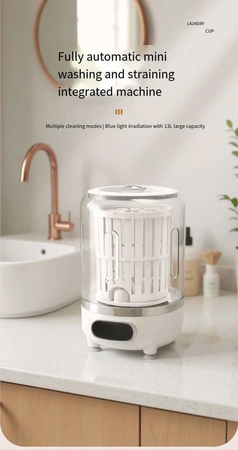 Make laundry effortless with this 3-in-1 Portable Mini Washing Machine, thoughtfully designed for compact living and delicate clothing. With a 3L capacity, it smartly combines washing, rinsing, and dehydrating in a single tub-saving water, energy, and time while delivering efficient results.