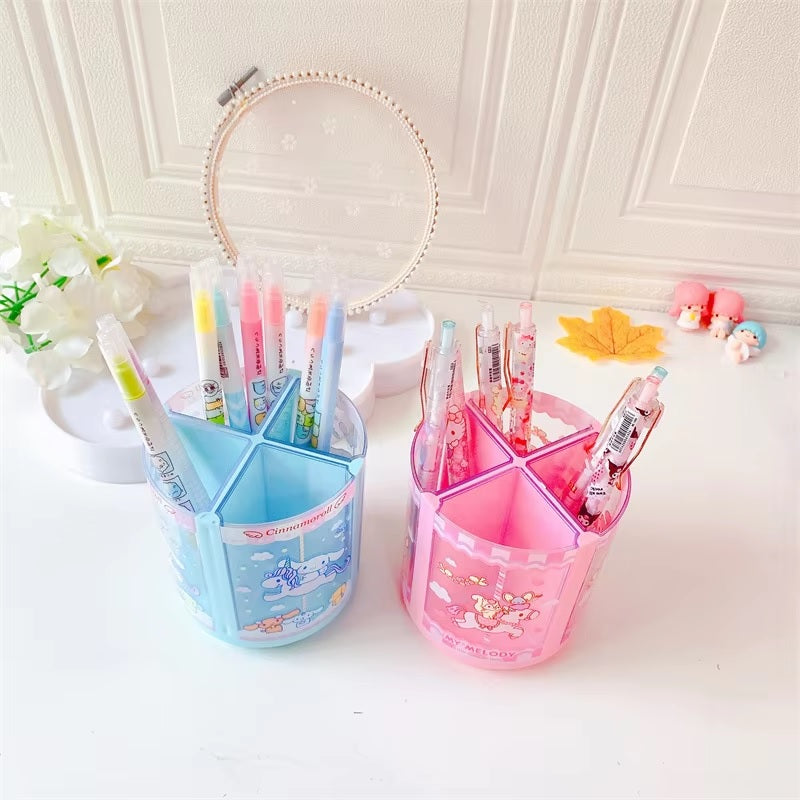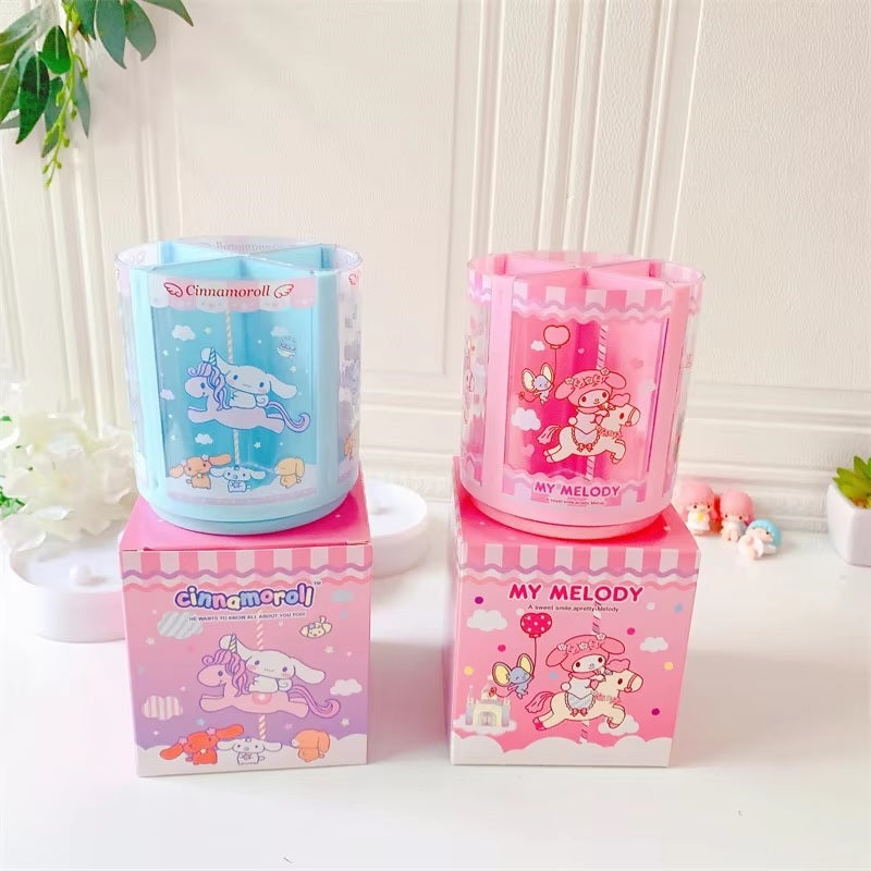 Turn your workspace into a cheerful haven with the Sanrio Carousel Rotating Pen Holder. Order now and enjoy the perfect blend of fun and function!