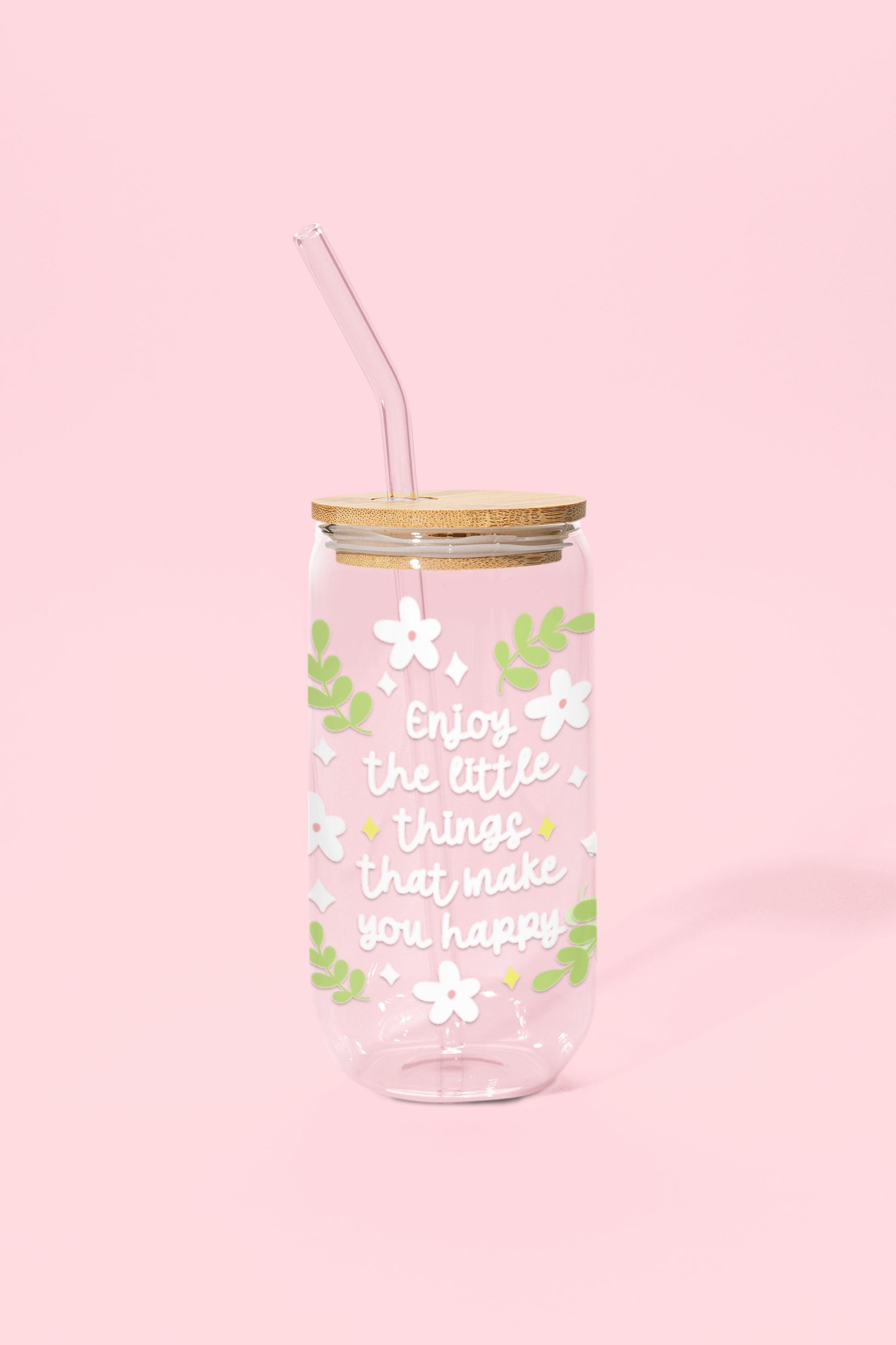 Enjoy the Little Things Glass Can Tumbler with bamboo lid & glass straw | 540 ml
