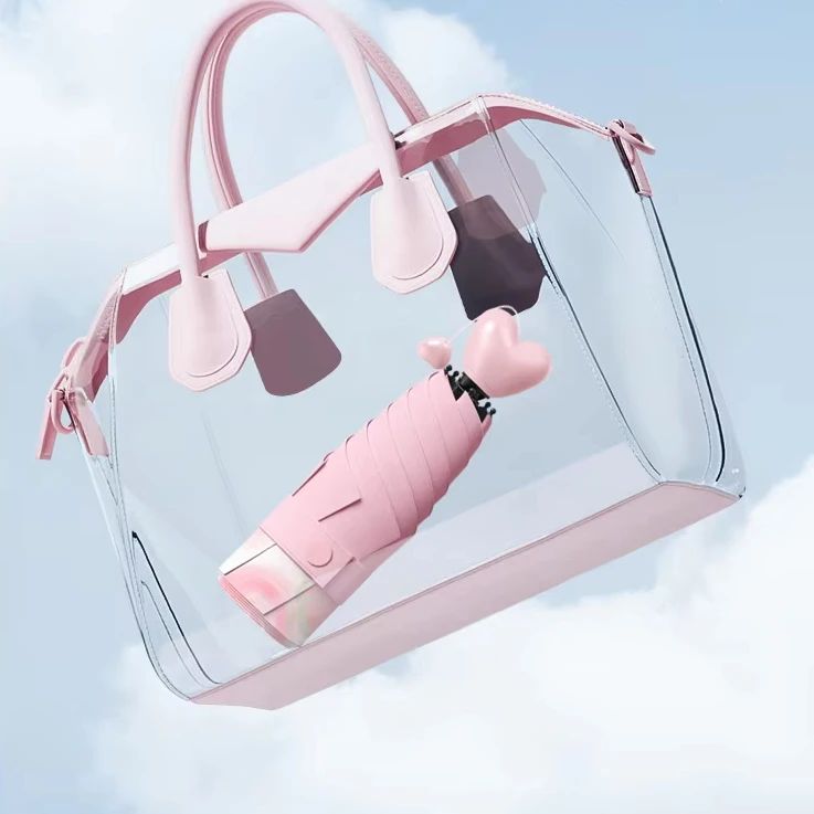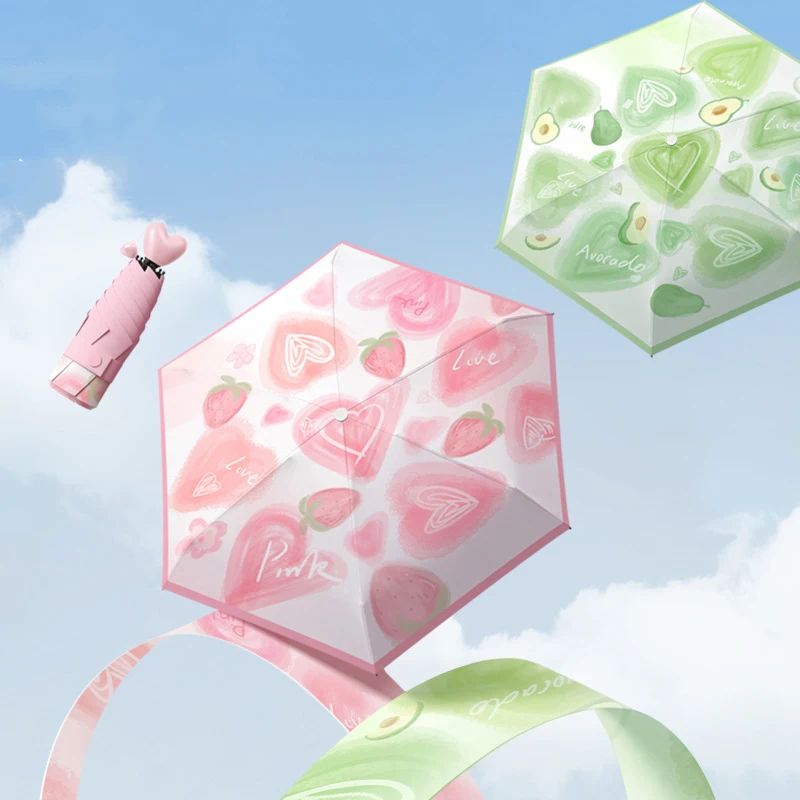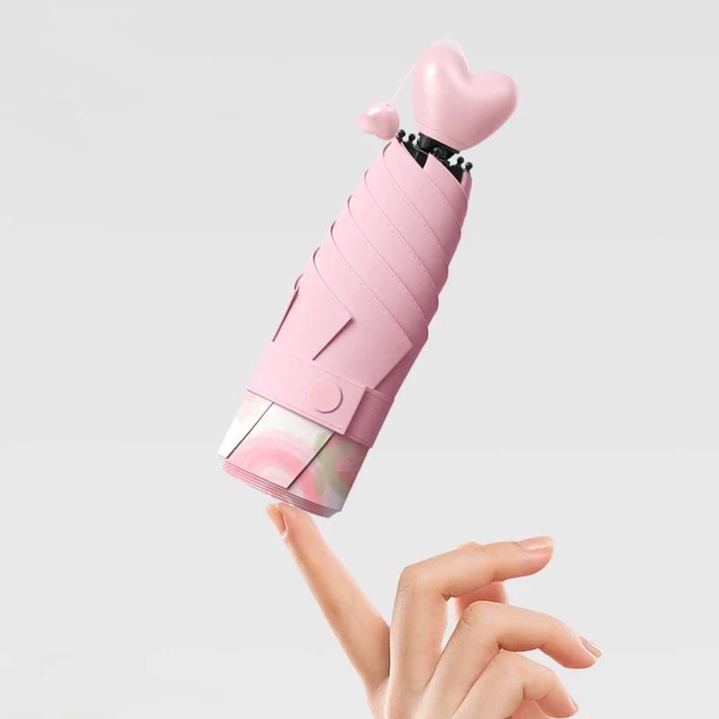 Stay stylish and protected with our Compact Folding Sunshade Umbrella featuring a chic heart-shaped handle.