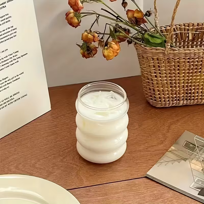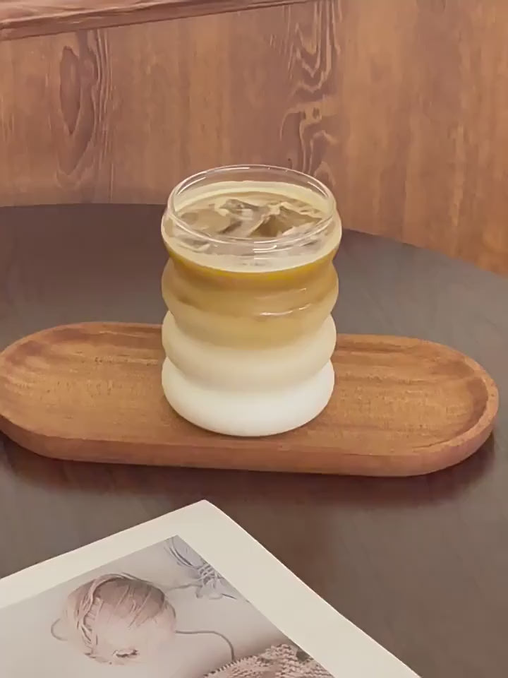 Made from high-quality durable glass, it’s perfect for everyday drinks like iced tea, juice, milk, cold coffee, matcha, or infused water. The stacked ripple design not only adds a trendy aesthetic but also ensures a comfortable, non-slip grip.